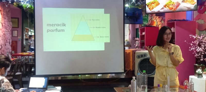 saya memulai bisnis ini pada July tahun 2020 saat awal pandemi, seperti kata salah satu platform marketplace yang menginspirasi saya dengan tagline nya Mulai Aja Dulu, saya ingin membagikan pesan yang sama kepada semua anak muda Indonesia untuk berani melangkah, dan cara saya untuk berbagi menjelang bulan Suci Ramadhan ini adalah dengan membuka kelas MERACIK secara gratis bekerjasama dengan THE GARDENERS CAFE, kata Monica, Influencer & Entrepreneur at Kamo Parfume.
