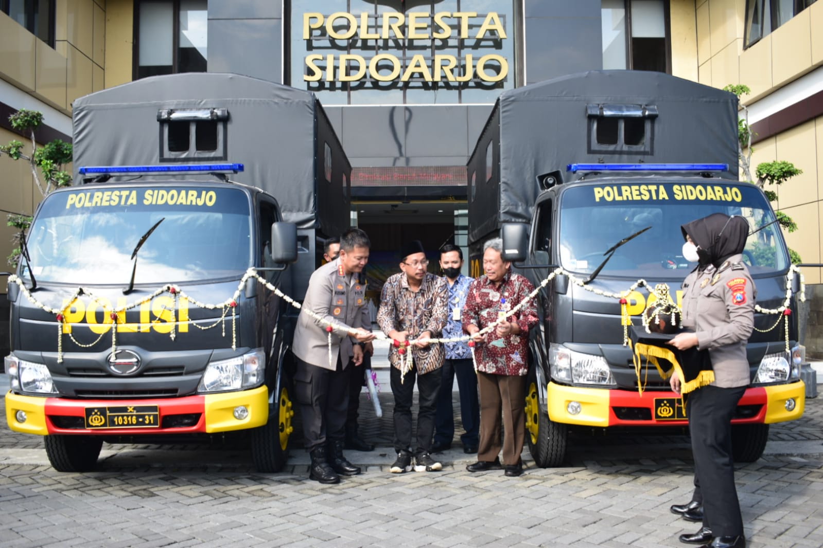 Atas diterimanya dua truk operasional dari dana hibah Pemkab Sidoarjo, Kombes Pol. Kusumo Wahyu Bintoro mengucapkan terima kasih atas perhatian Bupati Sidoarjo beserta dinas terkait.