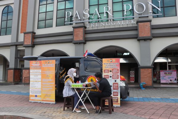 Untuk mendukung pelayanan ini, Satintelkam Polres Trenggalek mengerahkan satu unit kendaraan SKCK keliling berikut tiga personel yang mengawakinya.