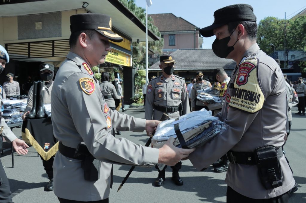 Pada kegiatan itu pula Kapolresta Malang Kota Kombes Pol. Budi Hermanto S.I.K., M.Si. membagikan peralatan tanggap bencana kepada seluruh Bhabinkamtibmas pada 57 Kelurahan Se-Kota Malang.