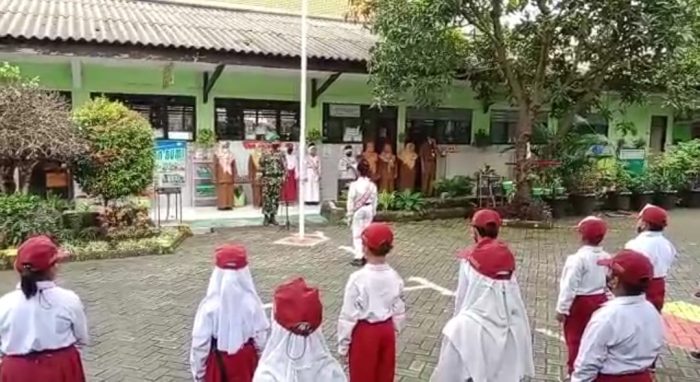 Tanamkan Cinta Tanah Air, Babinsa Sonokwijenan jadi Pembina Upacara di Sekolah