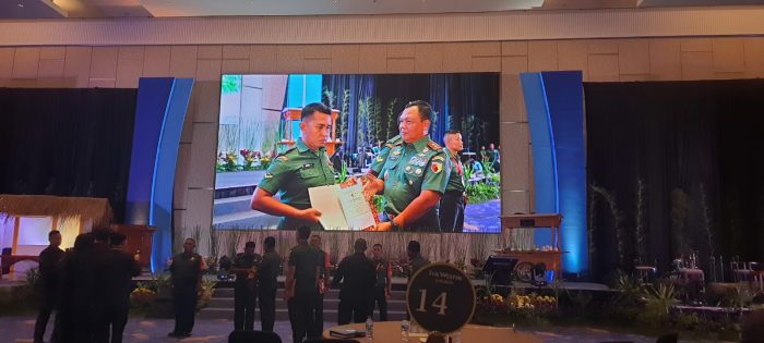 Serda Heru Fahamsyah serta beberapa Babinsa menerima langsung penghargaan dari orang nomor satu Kodam V/Brawijaya yakni Pangdam V/Brawijaya Mayjen TNI Farid Makruf, M.A. pada acara Rapim Kodam V/Brawijaya Ta 2023 yang digelar di Ballroom Hotel Westin Surabaya.