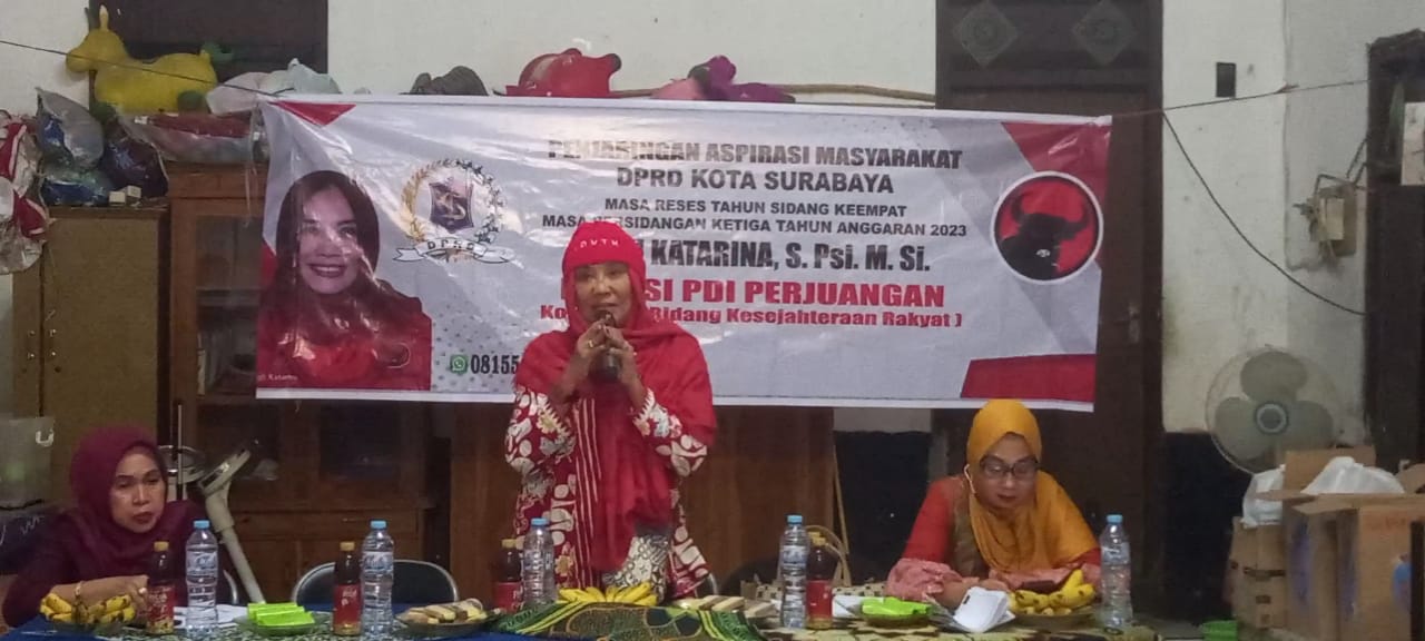 SURABAYA, KABARHIT.COM  -  Penjaringan aspirasi masyarakat anggota DPRD Kota Surabaya, Dyah Katarina, S.Psi. M.Si. Fraksi PDI Perjuangan, masa reses tahun sidang keempat, masa persidangan ketiga tahun anggaran 2023 bertempat di Ngagel baru III di Balai RT.005/RW.02, kelurahan Ngagel, Kec. Wonokromo, kamis (11/5/2023).