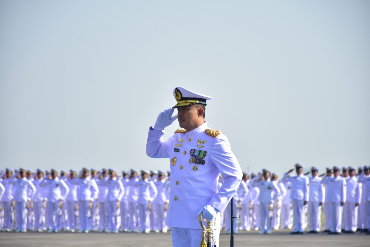 SURABAYA, KABARHIT.COM TNI AL-Puspenerbal Komandan Pusat Penerbangan TNI Angkatan Laut (Danpuspenerbal) Laksda TNI Sisyani Jaffar meminpin jalannya Upacara Peringatan HUT ke-79 Kemerdekaan Republik Indonesia Tahun 2024 di Apron Pangkalan Udara TNI Angkatan Laut Juanda, Sabtu (17/8/2024).