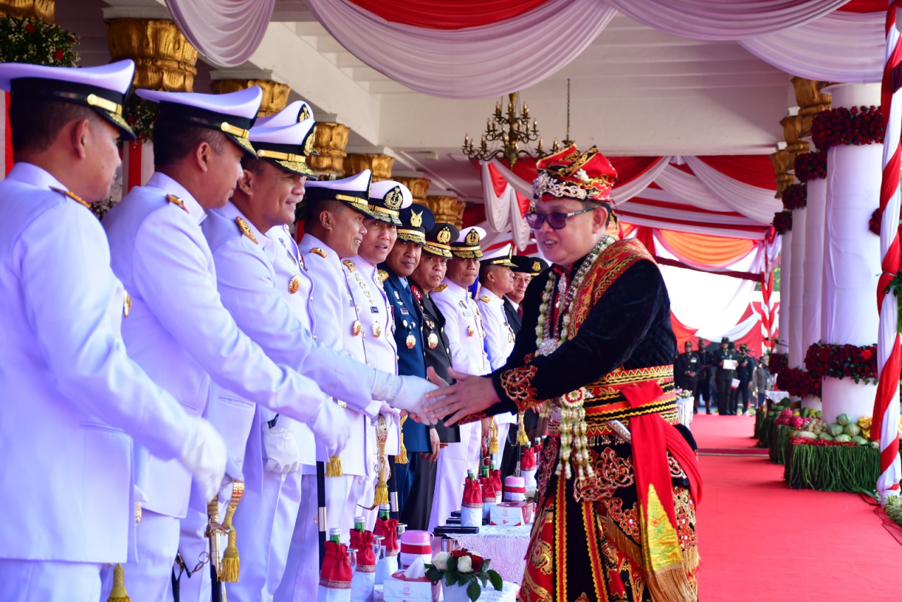 SURABAYA, KABARHIT.COM - TNI AL-Puspenerbal Wakil Komandan Puspenerbal Laksma TNl Bayu Alisyahbana menghadiri upacara Upacara Peringatan HUT ke-79 Kemerdekaan Republik Indonesia Tahun 2024 di Gedung Negara Grahadi Jl. Gubernur Suryo No. 7 Surabaya, Sabtu (17/8/2024).